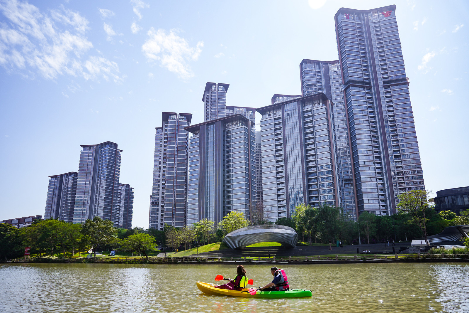 这种连片开发模式打破了传统住宅项目的物理边界,通过业态融合实现价值共生,正如2025年十五运会期间,越秀地产一手主导的琶洲水上运动嘉年华活动,将滨水空间转化为市民共享的体育休闲场域,形成集运动、生态、文化于一体的滨水活力走廊,彰显了生态体系的复合价值,给市民和业主留下了许多难以忘怀的“瞬间”。